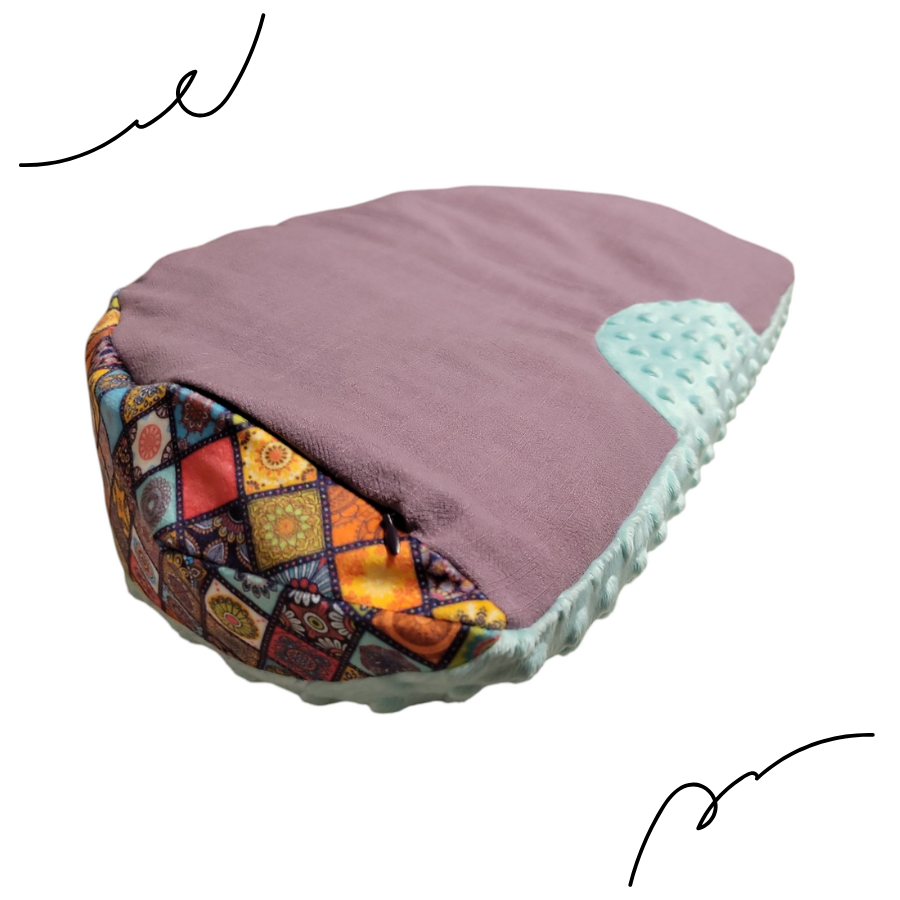 Pielęgnacja: Prać w 30°C. UWAGA: Prasować tylko części tkaninowe (Len/Bawełna). NIE PRASOWAĆ MINKY (stracisz bąbelki!).
